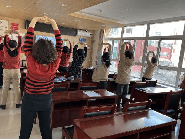随后,活动进入健康管理主题环节。辖区仁人和门诊药店的周大夫作为主讲人,向居民们系统介绍了贝壳公益品牌项目——“我来教您防跌倒”之疾病管理模块。周大夫结合自身在颈肩腰腿痛诊疗方面的丰富经验,详细讲解了慢性病管理与防跌倒之间的紧密联系,指出通过科学用药、合理锻炼、改善生活习惯,可有效降低跌倒风险。她还现场示范了预防颈肩腰腿痛的日常保健动作,带领大家一同练习,居民们纷纷起身跟学,收获满满。