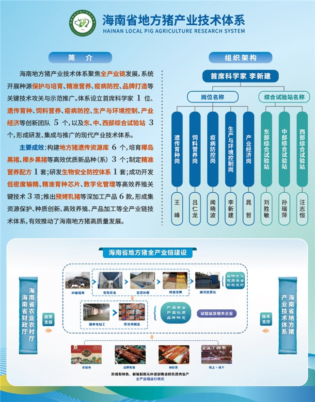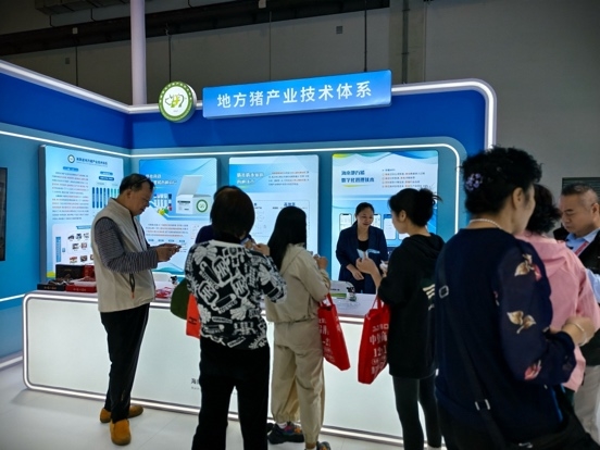 展区集中展示体系组织架构、精准高效海南黑猪育种芯片、精准精液输精技术、海南地方猪数字化技术——“珍猪”APP、猪用南药复合植物提取物饲料添加剂等一系列创新成果,同时通过宣传片介绍了海南地方猪种质资源现状。