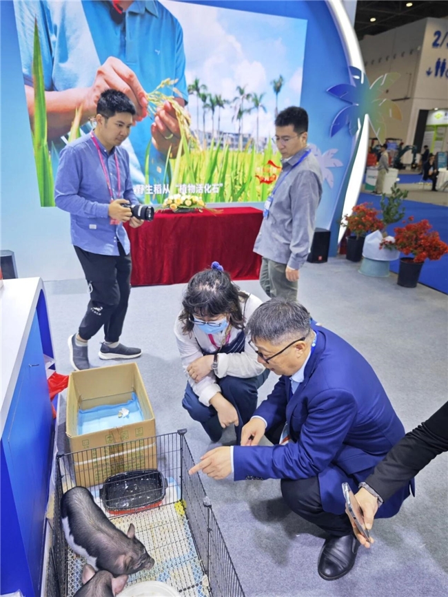 另一备受关注的亮点是五指山仔猪活体展示。它们外形憨态可掬,毛色黑白分明,吸引了大量小朋友和游客驻足合影。该展示不仅生动呈现了海南地方猪的独特魅力,也通过现场科普讲解,向公众传达了种质资源保护的重要意义。